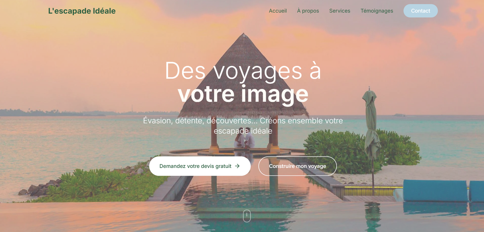 Notre mission était de créer un site moderne et entièrement sur mesure permettant à L’Escapade Idéale de présenter ses services, ses destinations et son expertise.